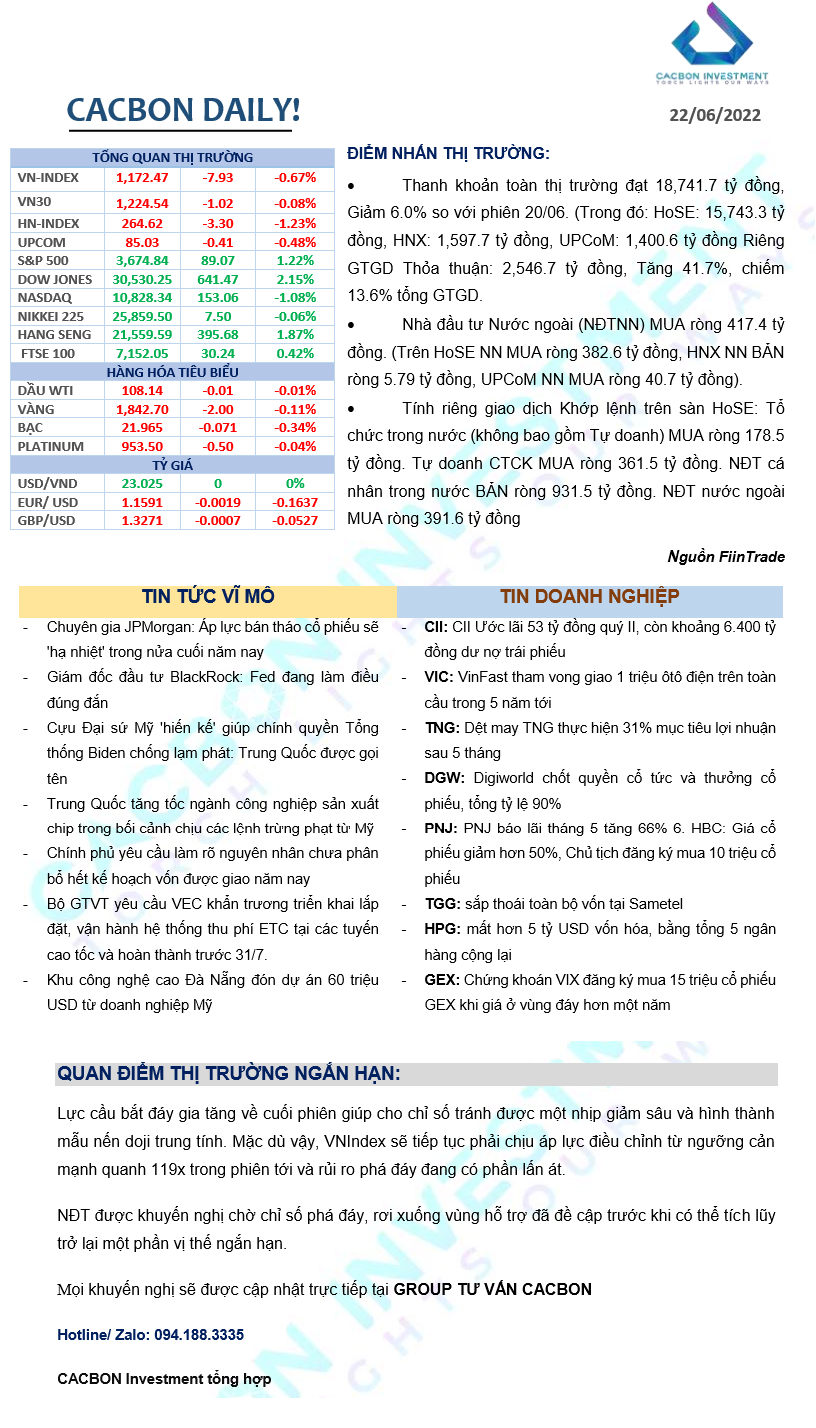 Nhật ký thị trường 22/06/2022 - VNIndex đảo chiều giằng co