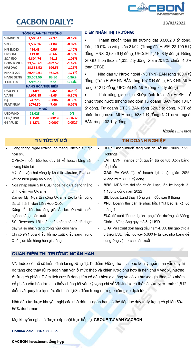 Nhật ký thị trường 23/02/2022 - Nhóm Ngân hàng, Dầu khí, Bán lẻ đi ngược thị trường