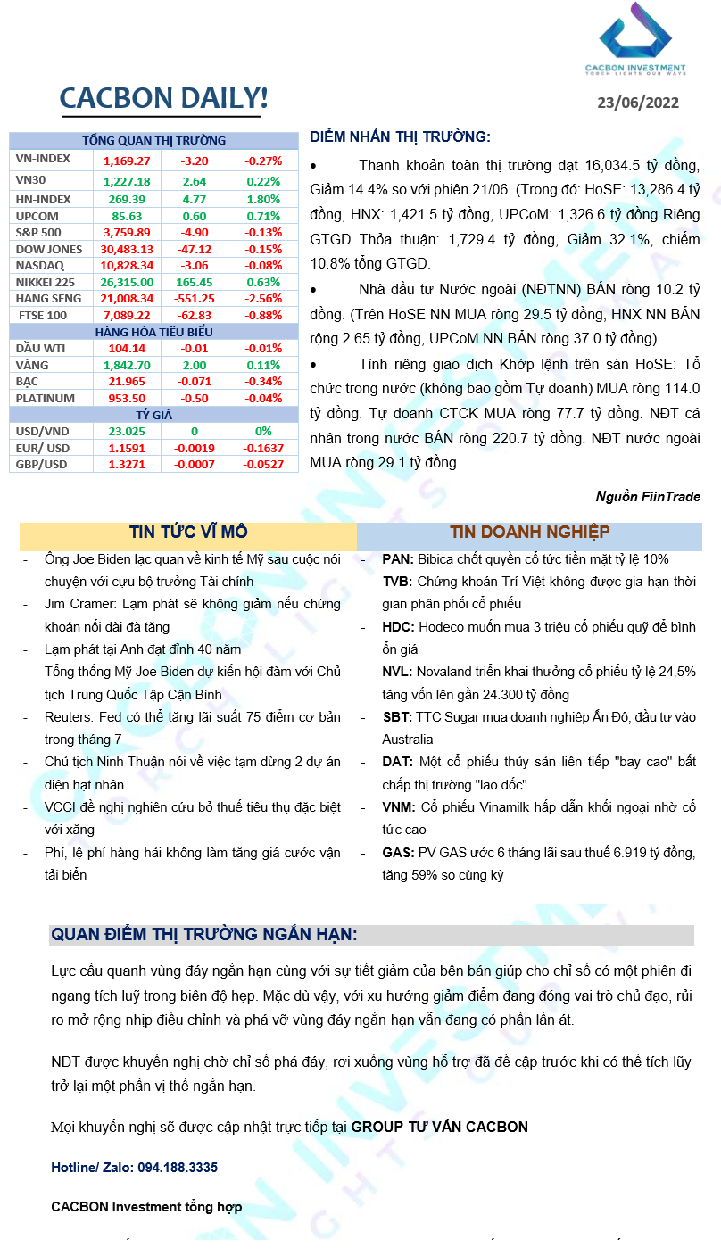 Nhật ký thị trường 23/06/2022 - Lực cầu quanh vùng đáy ngắn hạn