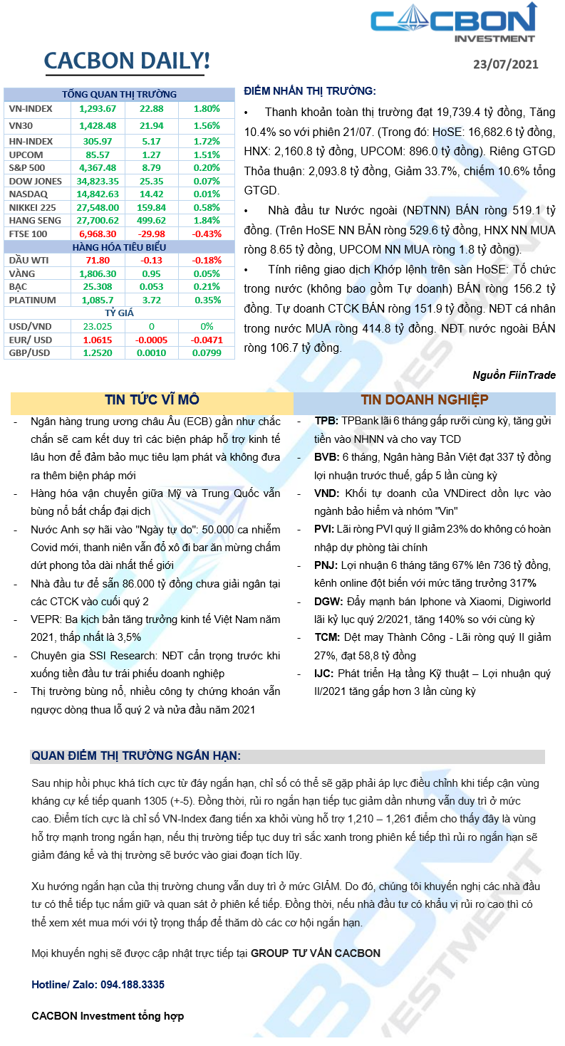 Nhật ký thị trường 23/07/2021 - Thị trường tiếp tục hồi phục
