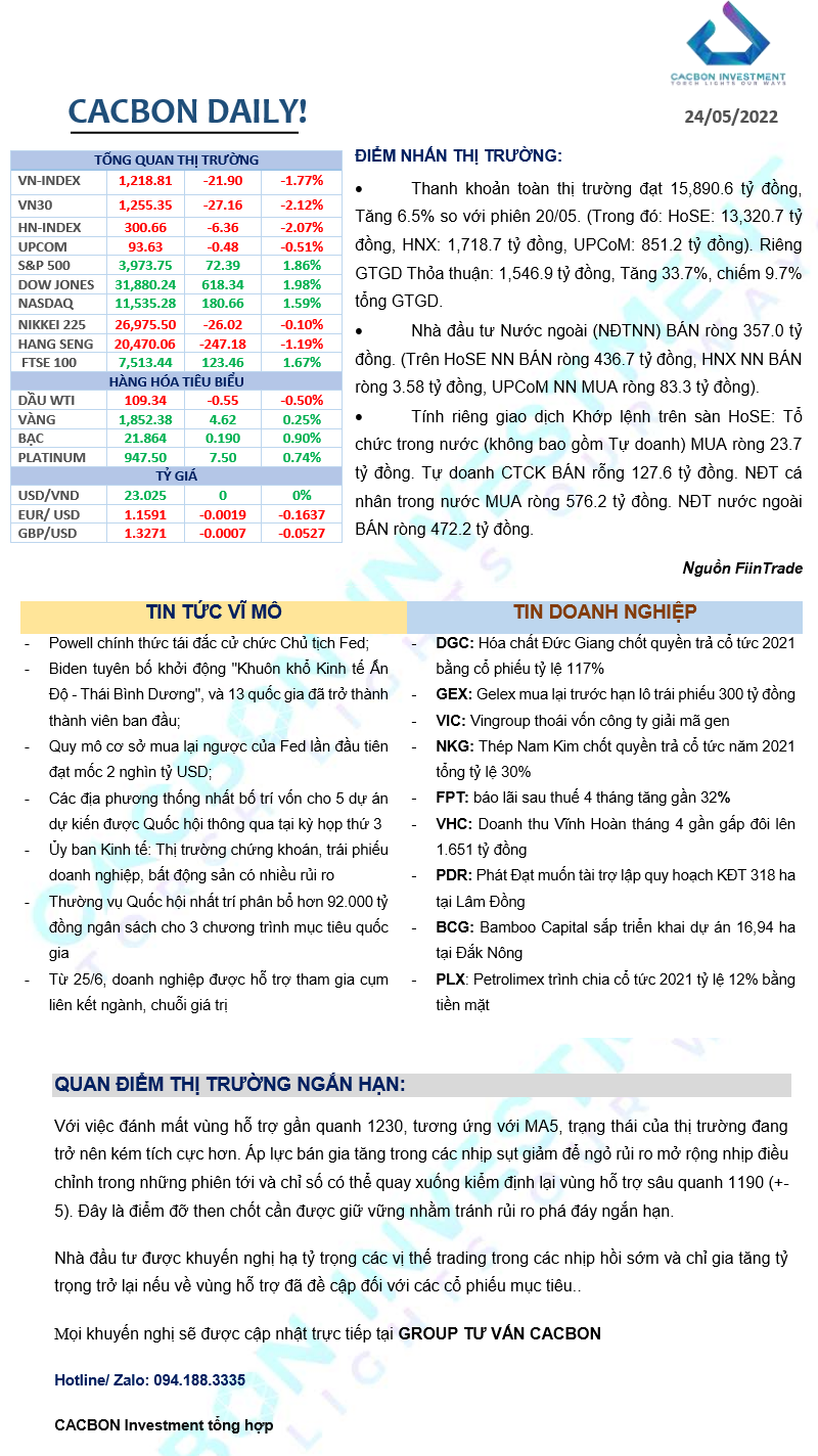 Nhật ký thị trường 24/05/2022 - Thanh khoản đi vắng