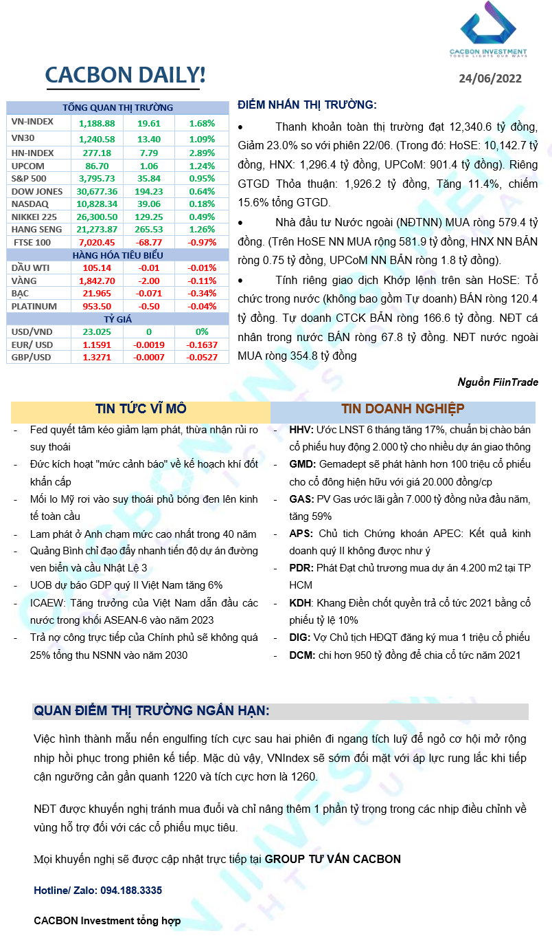 Nhật ký thị trường 24/06/2022 - VNIndex đã sớm lấy lại đà hồi phục