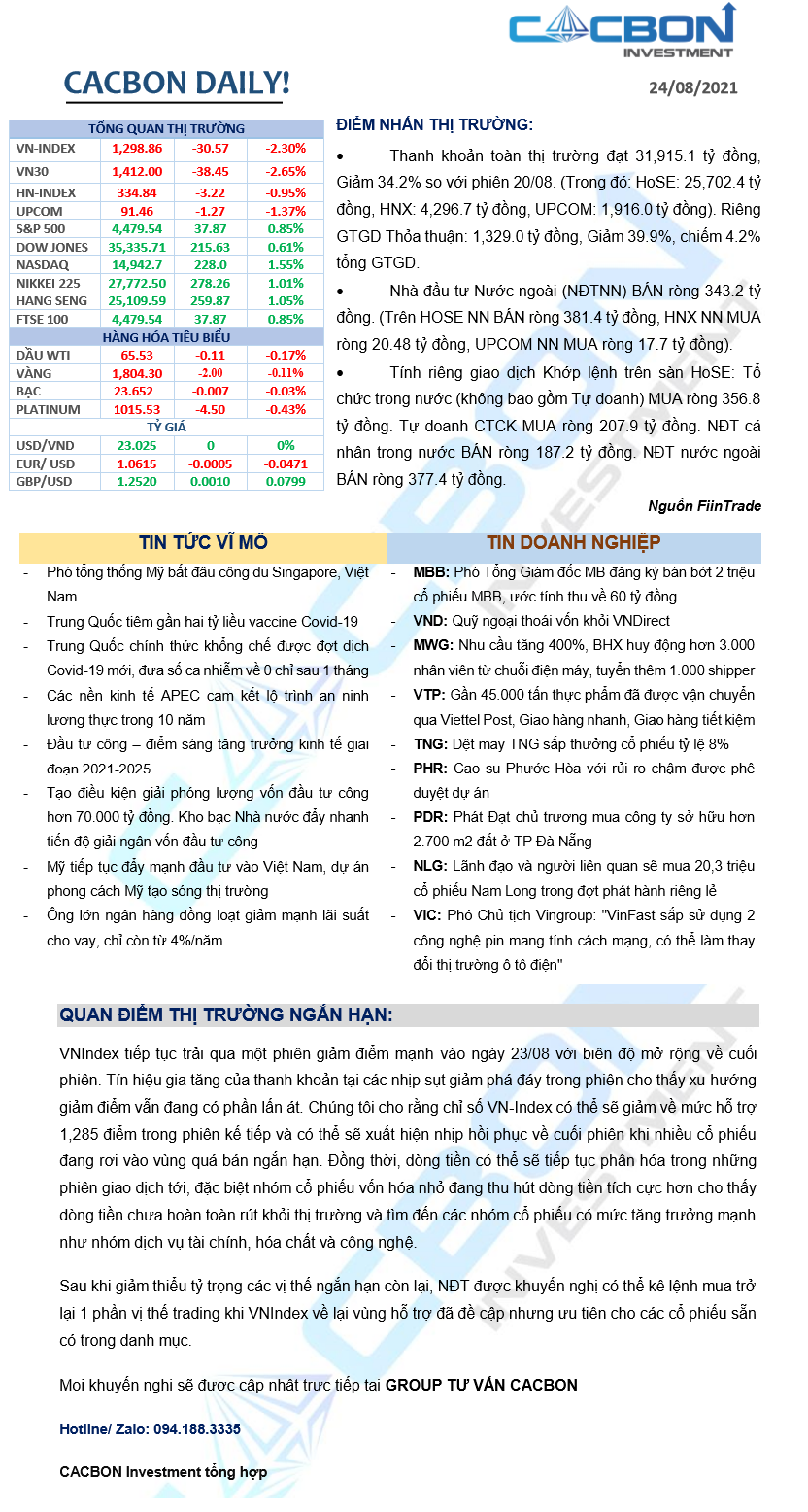 Nhật ký thị trường 24/08/2021 - Tìm điểm cân bằng