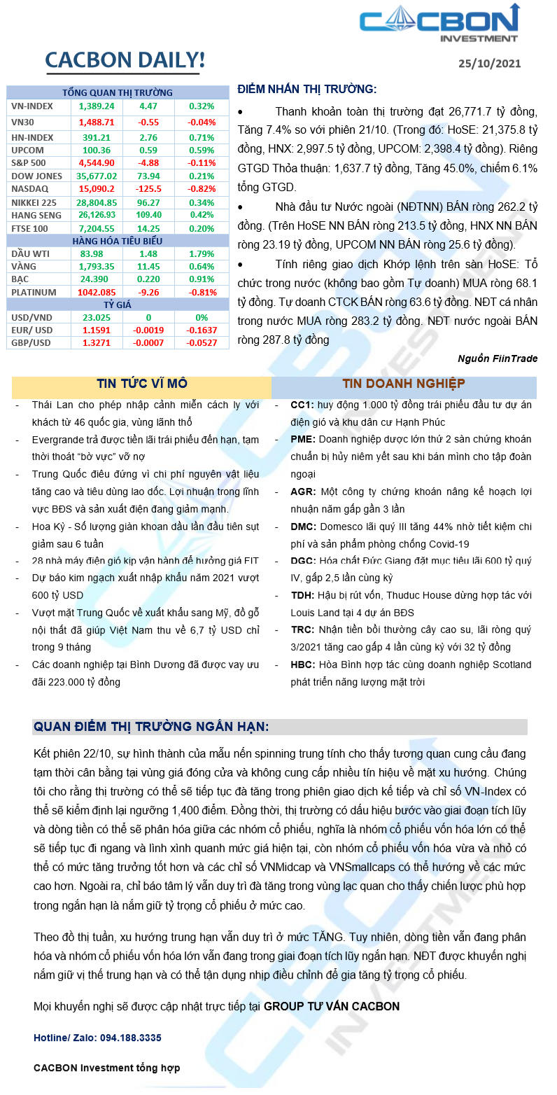 Nhật ký thị trường 24/10/2021 - Nhóm Bất động sản diễn biến tích cực trong tuần qua