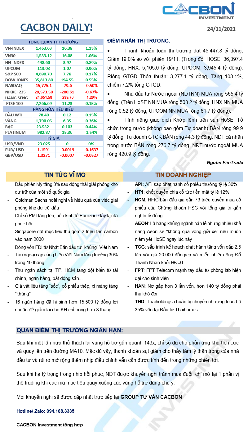 Nhật ký thị trường 24/11/2021 - Thị trường hồi phục, thanh khoản suy yếu