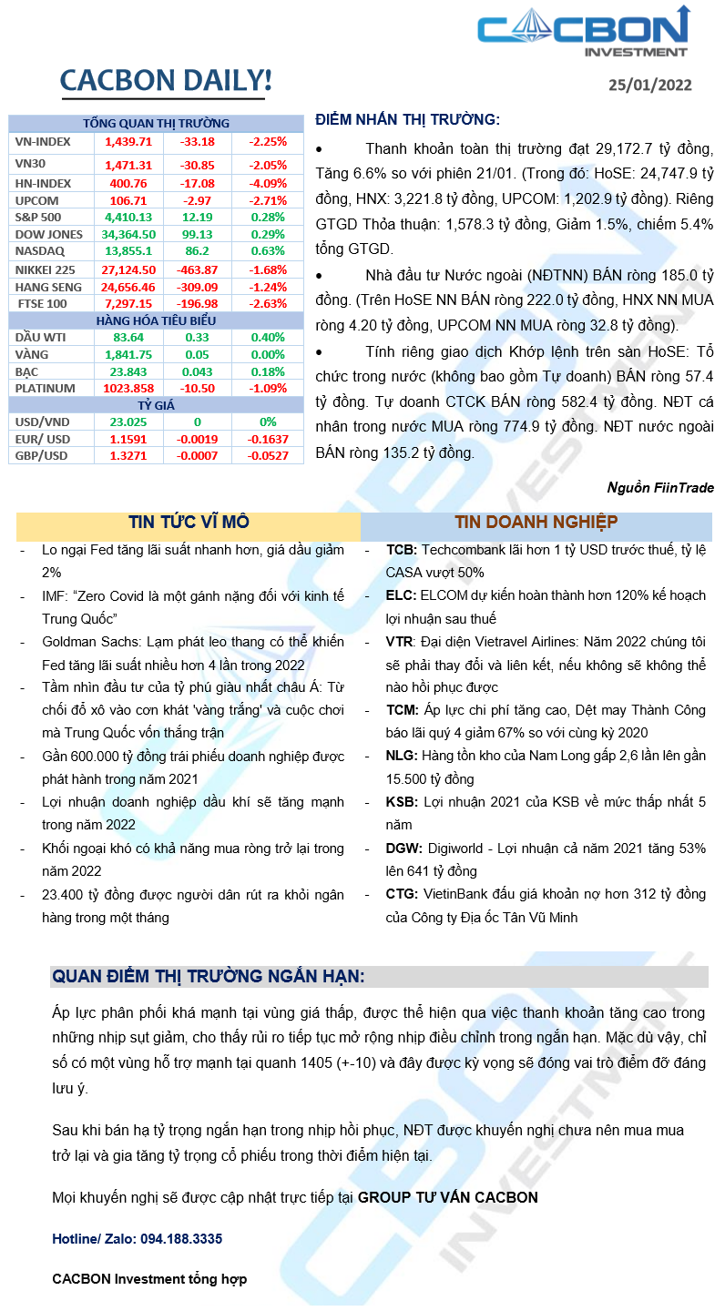 Nhật ký thị trường 25/01/2022 - Khối ngoại bán ròng nhẹ trong phiên thị trường đỏ lửa