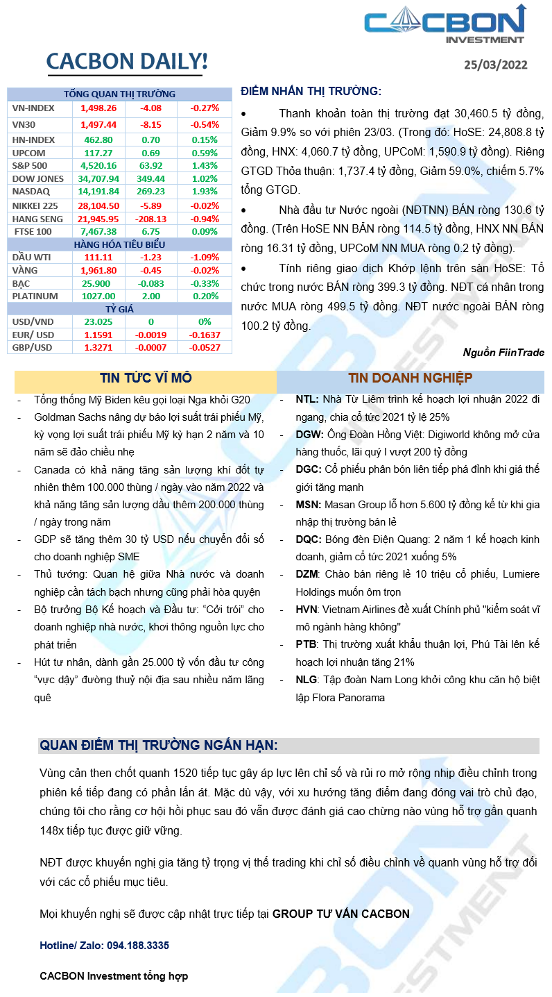 Nhật ký thị trường 25/03/2022 - Các chỉ số biến động hẹp