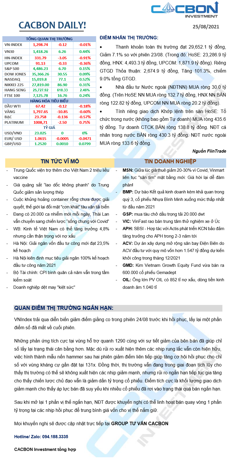 Nhật ký thị trường 25/08/2021 - Cung giá thấp dần hạ nhiệt