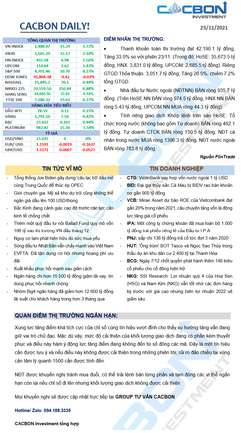 Nhật ký thị trường 25/11/2021 - Chỉ số VN-Index thiết lập mức cao mới