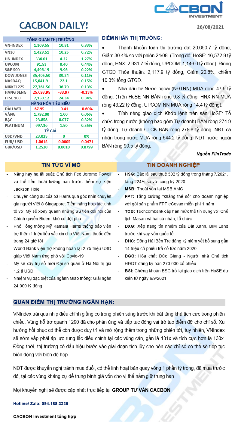 Nhật ký thị trường 26/08/2021 - Thị trường hồi phục