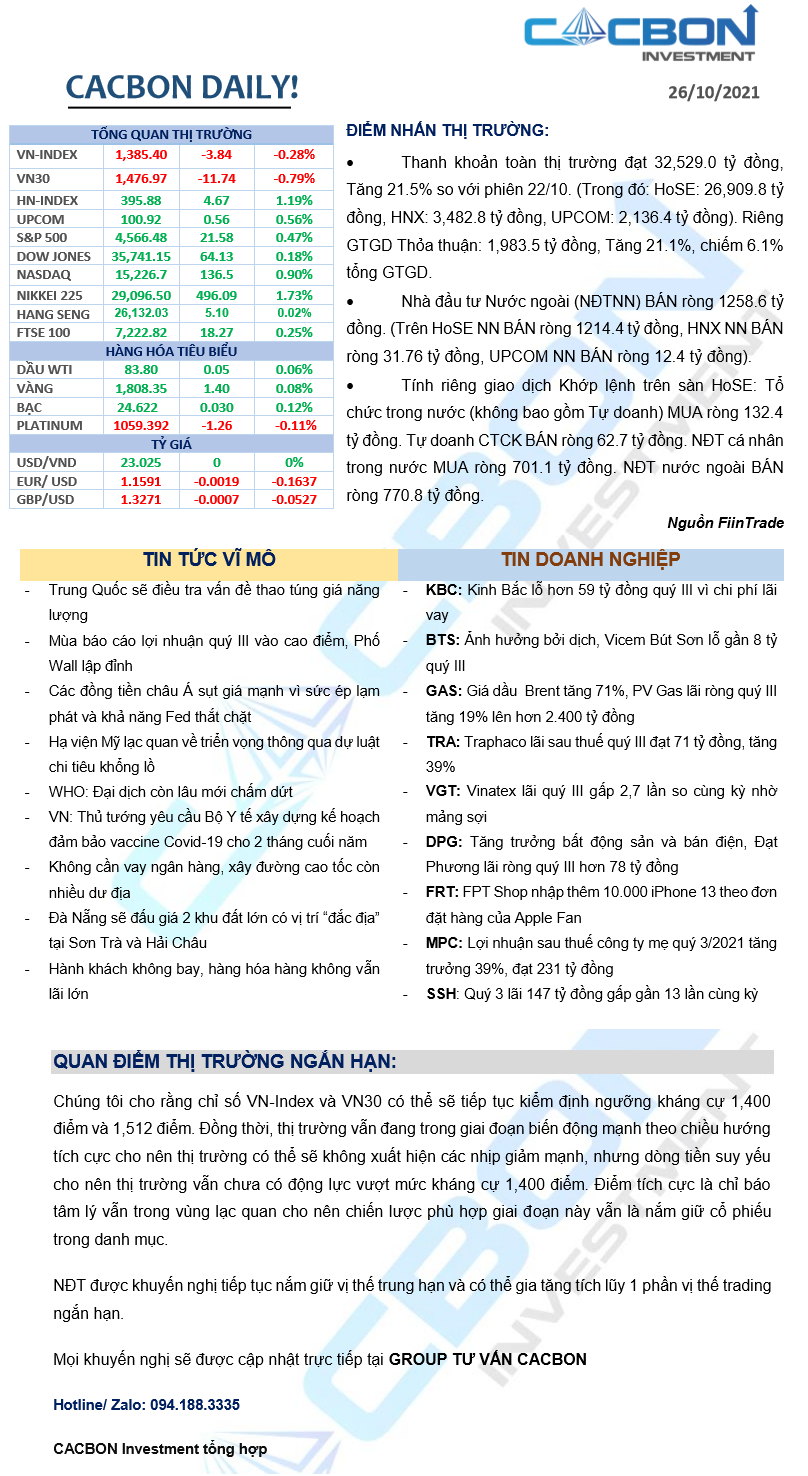 Nhật ký thị trường 26/10/2021 - Ngân hàng lạc nhịp
