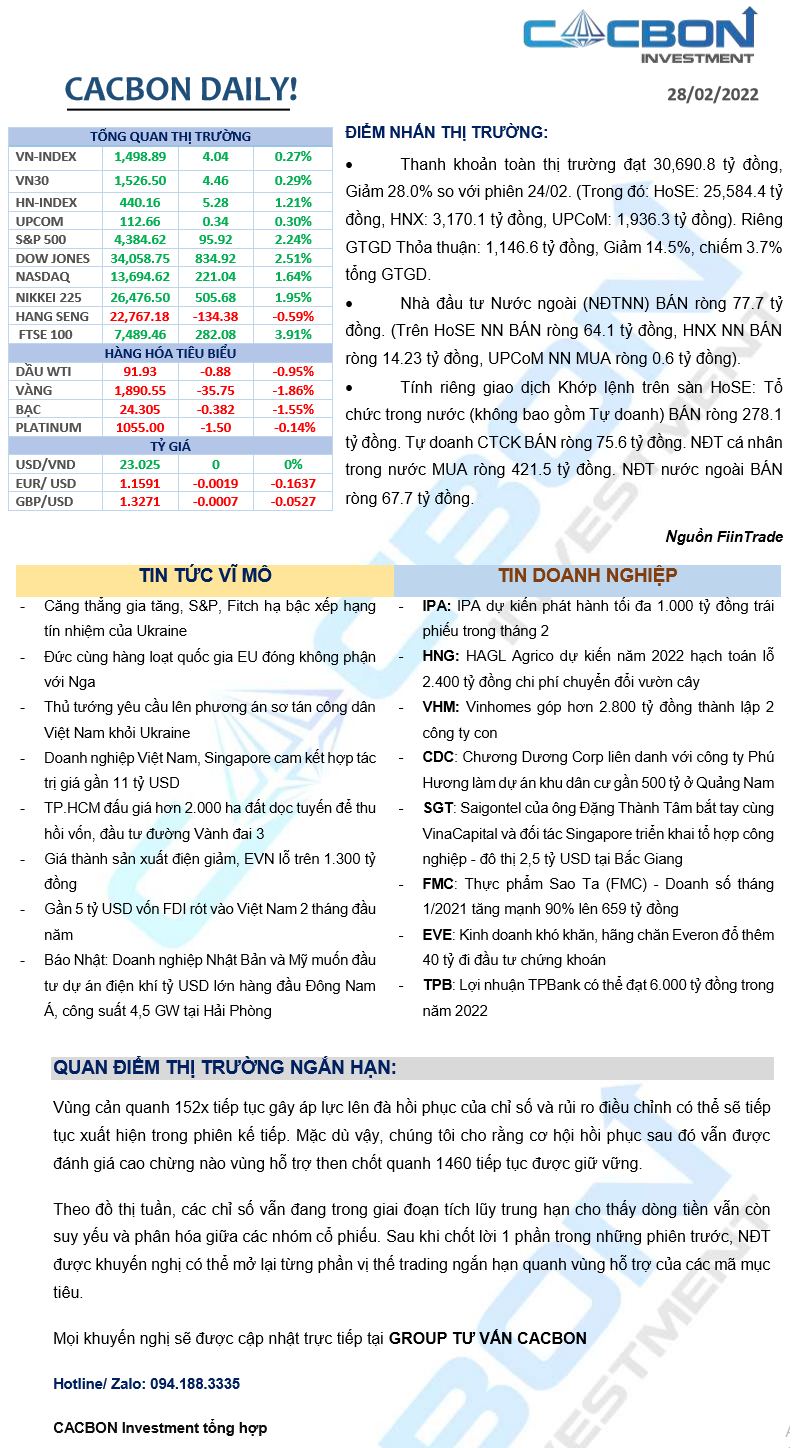 Nhật ký thị trường 28/02/2022 - Thế giới giảm mạnh nhưng TTCK Việt Nam đi ngang