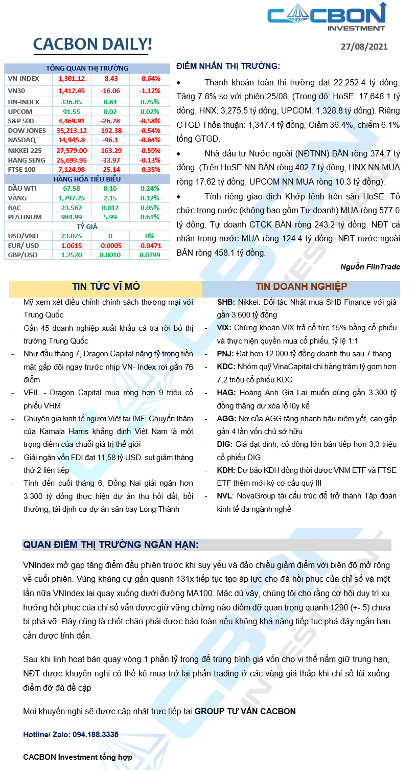 Nhật ký thị trường 27/08/2021 - Tiếp tục phân hoá mạnh