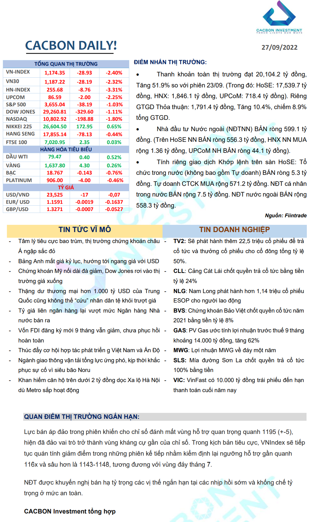 Nhật ký thị trường 27/09/2022 - VN-Index hồi phục nhẹ cuối phiên sau đà giảm mạnh