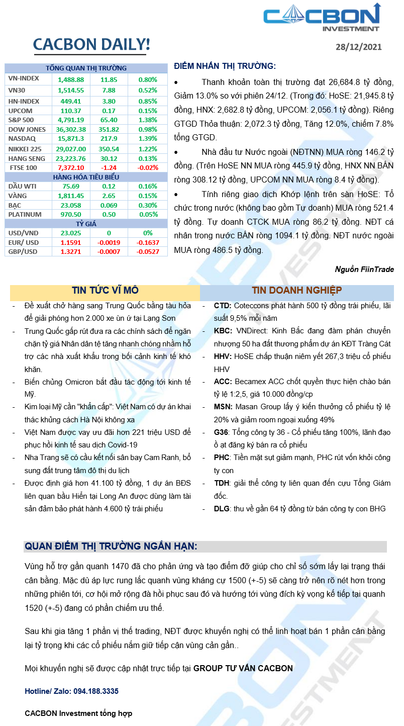 Nhật ký thị trường 28/12/2021 - Tiệm cận ngưỡng 1,500 điểm