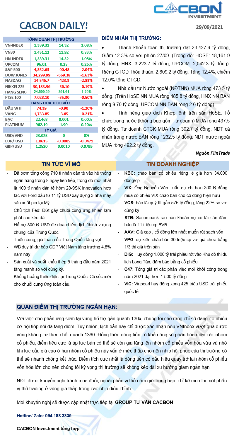 Nhật ký thị trường 29/09/2021 - Nhóm Dầu khí tăng điểm tích cực trong phiên phục hồi