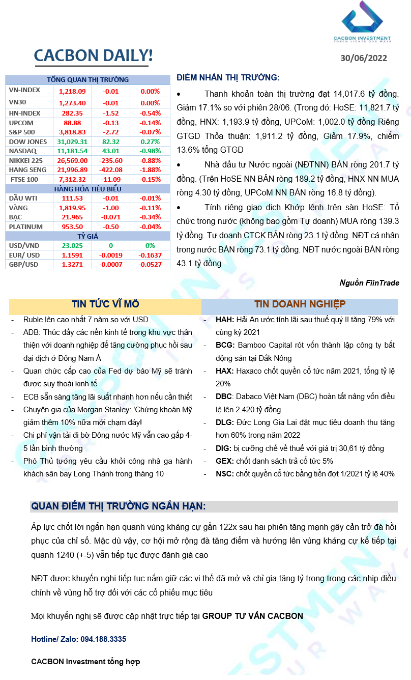 Nhật ký thị trường 30/06/2022 - VN-Index đi ngang