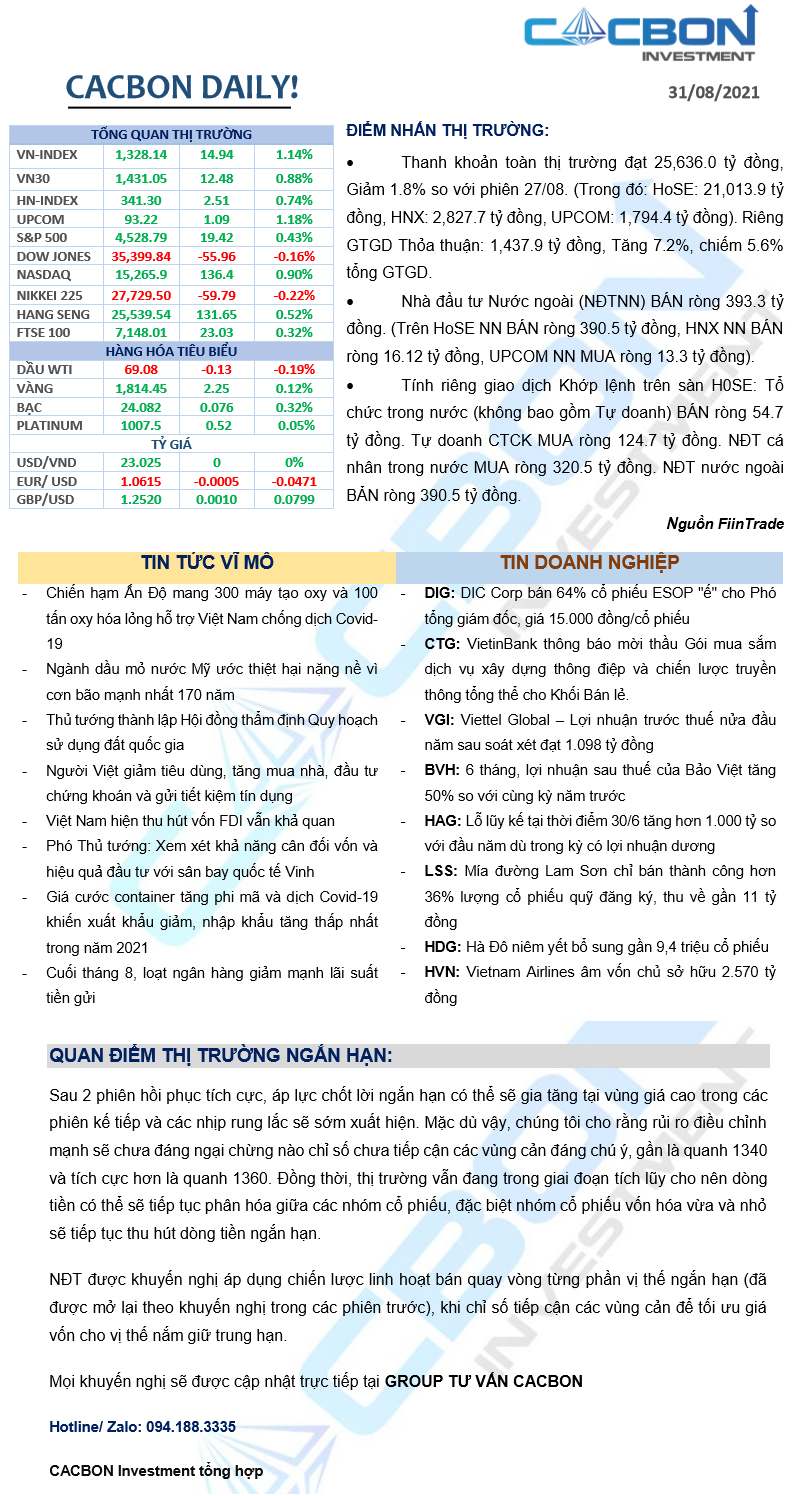 Nhật ký thị trường 31/08/2021 - Thị trường tăng điểm với sắc xanh lan toả