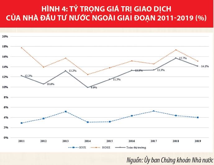 TTCK đã thu hút đông đảo các nhà đầu tư trong nước và nước ngoài với trình độ ngày càng cao, từ 3.000 tài khoản năm 2000, đến nay (tháng 6/2020) đã đạt trên 2,5 triệu tài khoản, bao gồm 33.395 tài khoản của các nhà đầu tư nước ngoài giúp thu hút nguồn vốn đầu tư nước ngoài, góp phần phát triển nhiều doanh nghiệp niêm yết thành các doanh nghiệp có thương hiệu quốc tế và quảng bá hình ảnh kinh tế Việt Nam. Giá trị danh mục đầu tư của nhà đầu tư nước ngoài chiếm khoảng 20% vốn hóa thị trường cổ phiếu.